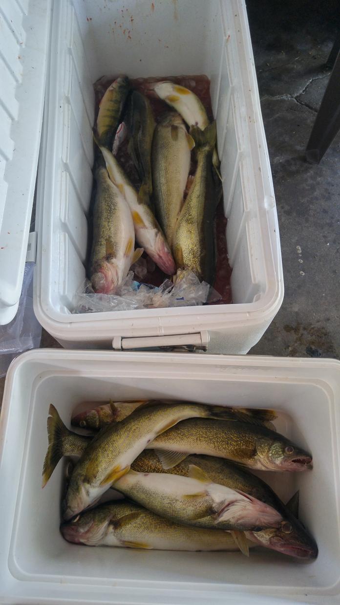 Fished West of SP Saturday morning, 4 walleye, and 1 perch. Lost another lead core line because of a foul hooked sheapshead, spinning retrieve knotted it up. Two on Renosky Crystalinas and two on copper harnesses, 70' East wind was a hassel.