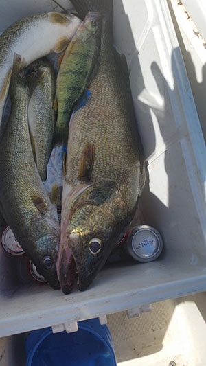 Fished out of Dunkirk today. A little east of Purina from 65 ft to 90 ft. We got 5 walleye, not very big, one throwback, 3 sheep head, 2 perch, 1 channel cat, 1 white perch. It was choppy. Had several releases and the worm was hit. But many misses. ?????