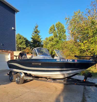 Like new! 2017 stratos 386xf, mercury 150 4 stroke and mercury 9.9 prokicker, tiller tied in main motor with trollmaster, 2 hds 7 inch, minnkota 80 terrova ipilot, only 80 hours! Tandem axle traile...