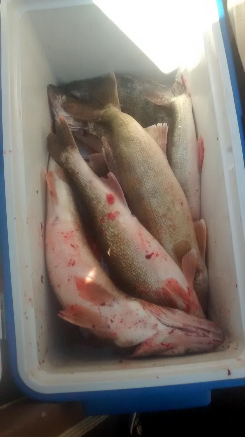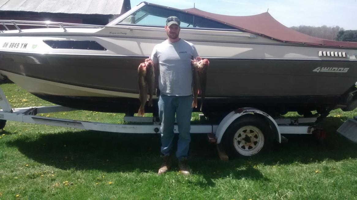 It started out with bad luck from the start plus I was nervous anyways because of being my first time operating a boat on lake Erie although I have been on the lake many of times just not behind the wheel so with that being said the problems started the night before which was this past Saturday night I hooked the boat up to the truck to find the tail lights weren't working on the trailer as I looked at the wires I found several different splices so I started there to find nothing wrong and by 1:30am I found that it was the wires on my truck that were bad eerrr!! Finally got to bed at 2am and woke up at 4:30am made my coffee finished putting the last few things in the boat and headed off to pick my brother up and then to the lake. Got a couple miles down the road went to reach for my coffee and it wasn't there I had left it on the bench in the garage?:mad: Strike 2.... Got to Toussaint about 7:30 put the boat in the water and went to start it when I noticed the key was in the on position!!! Went to start it yep it was dead luckily I have a back up battery switched it over and she fired then off we went got about 300 yard from ramp as my brother was still messing with the depth finder which I told him come on I need to know what depth I'm in? But it was too late as I found myself stuck in the mud...... Strike 3....After several minutes getting out of that we were on our way to open water and finally to our destination which was out front of Bessie in 14-16FOW. 8:30 I made my first cast and BAM fish on from there our luck turned around and ended up catching 9 Walleye by 10am. We were using purple and green hair jigs tipped with shiners and casting into the wind and all the strikes were within the first few cranks using a quick snap up 6-8 inches off the bottom. All in all its turned out to be an awesome day my main focus was getting on and off the lake safely and the Walleye was a bonus. Oh and thank you pimplepounder I figured out with your help how to post pics. Lol...Attachment 3898Attachment 3899