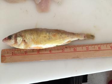 The Regina Marie had kids and father-in-law out at 8am. Started SE of Kelley's and trolled east. Slow to get going but got one 85 back on Bandit, then another 85 back. Dropped all our bandits from 60-70 to 85 - 90 and increased speed a bit to 2.4. After getting 3 in the first 2 hrs we got 6 in the next 90 min. One FO, NO shorts again! 40 FOW, Harnesses did ok. Wish we had more time but promised the ladies to take them island hopping. As a side note, there are perch some where, this guy was in the belly of a 24" er: