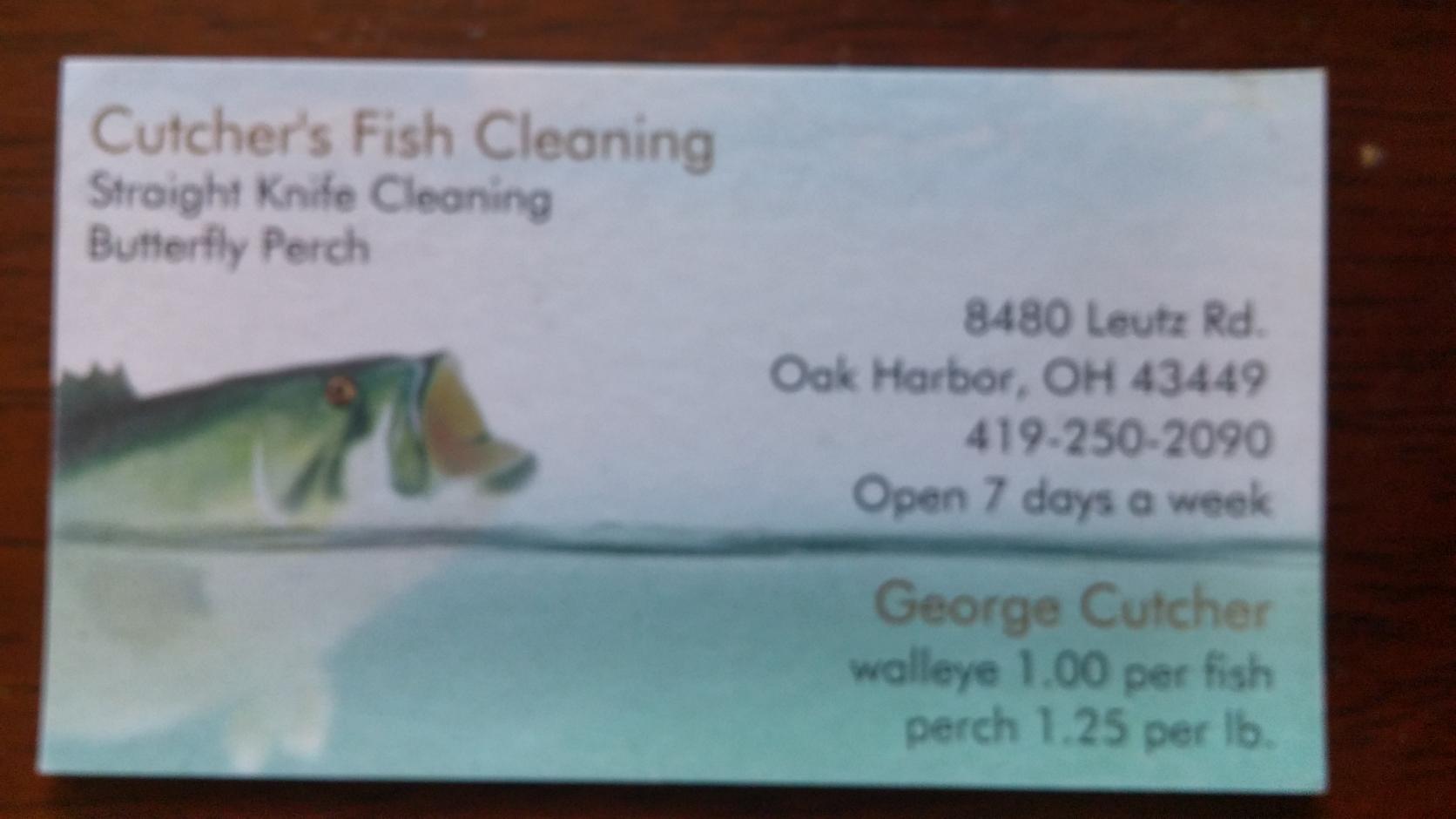 I don't have Cutcher's info handy, it wasn't in with the others, but they are located just down the road (little over a quarter mile or so) that's on the west side of the Bait Barn (now called Dream Catcher Baits?). Little sign out on Rt 2. His prices were in line with the others. He'll also clean anything - catfish, sheephead, white perch, even alligator!