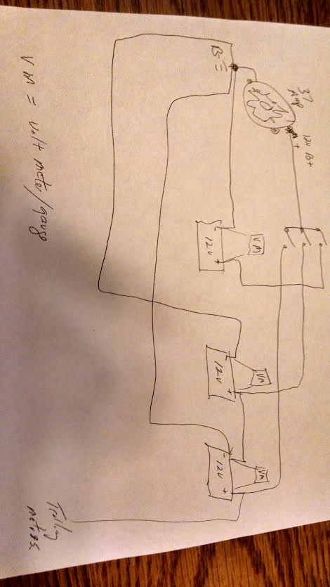 Current configuration: one motor with 38 amp alternator output, one starting battery, one deep cycle marine battery, a/b switch to switch. Two trolling motor batteries (24v) stand alone with onboard AC charger.