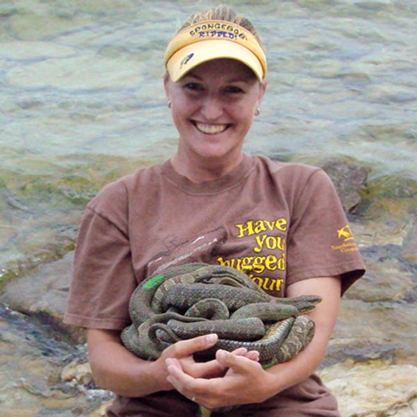 Sure that is a water snake and was taken around here? With triangular head common to poisonous snakes, diamonds on the back and what looks like rattles on the tail, I am wondering if that is a rattler?