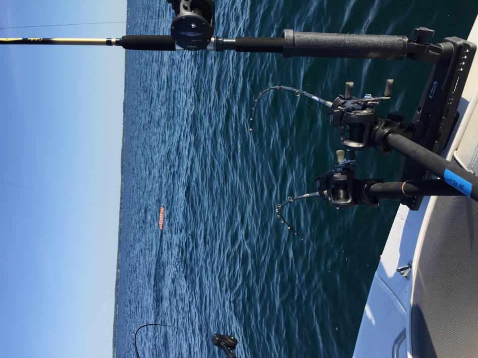 I built a Big John adjustable single holder to run off the rear gunnel with a Dipsey. So I can run 3 rods off each big board and a single rod on each side with a Dipsey keeping the spacing better than 4 rods off a big board on each side.