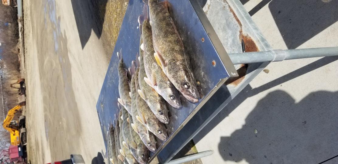 First trip of 2019, fished with Captain Chris out of Sterling State Park, Michigan, when we left the dock at 8:00 AM it was 26 degrees. Arrived on point at 8:15, by time we set the lines it was 8:30. Trolled East to West in Breast Bay at 1.2 mph, 1st 1.5 hours one hit and it got off. At approximately 10;05 "Fish On" by 11:00 AM we had 7 fish in the box, Captain Chris got a call from a colleague and they said they had one. Fished until 3:00, ended up with 14 nice fish, didn't limit out but not a bad day by far. When we pulled up to the dock the boat next to us got skunked, thanks to Captain Chris, for a good day on the lake.Attachment 5463Attachment 5464Attachment 5465Attachment 5466