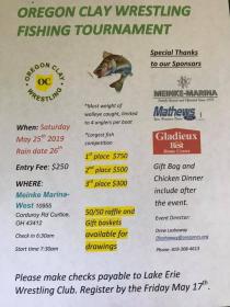 the wrestling coaches stopped by the bait shop today asked to put up sign out front and gave us some flyers we will support clay being wife's parents, wife and kids and grand kids did and will go to clay high 4 generations. so i have to support them even though i went to Waite high so get involved and support a great cause, on the fishing front the jig bite has been slow in the bay kinda muddy best i heard was 12n ft of water off wild wings and turtle point and some luck on crane reef was doing good but it got cold fishing slowed water temps around 38 last i heard. a warm week end should help the bait shop phone number is 419-972 4503 call ill help if i can