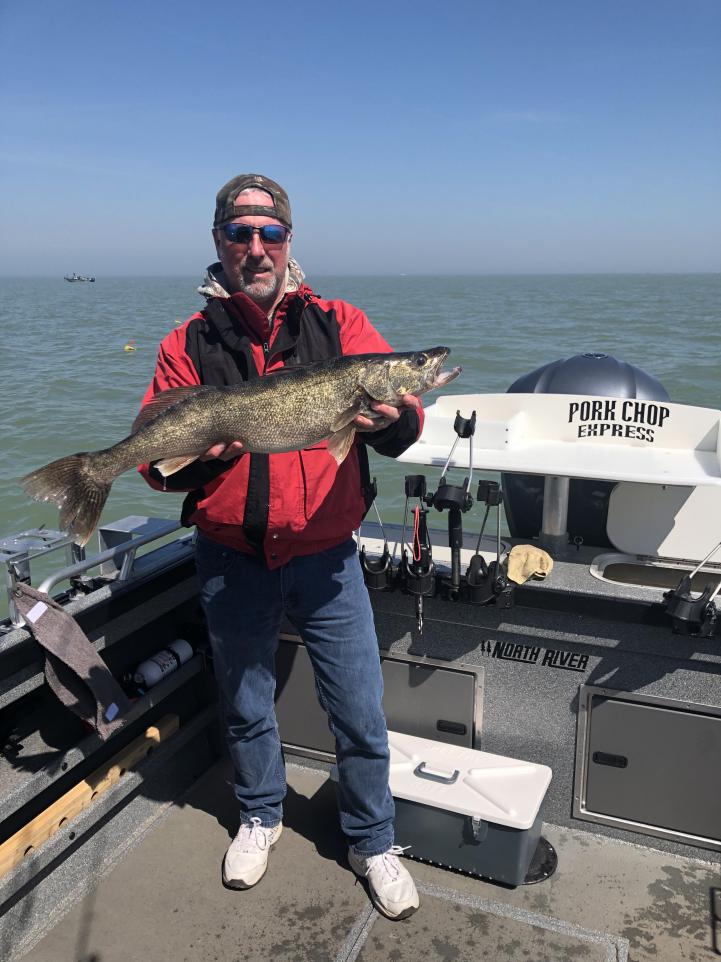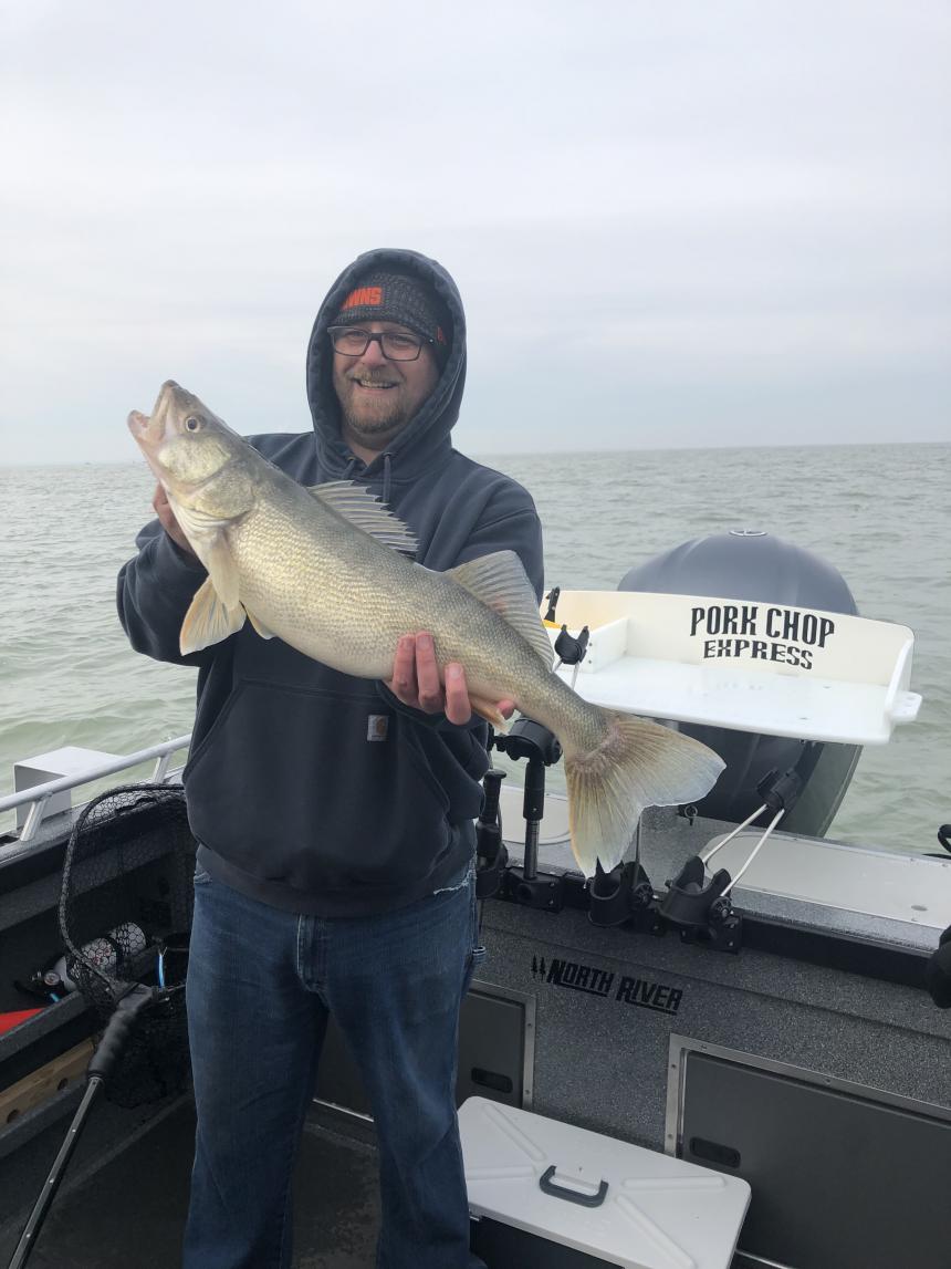 Friday was a rough day on the lake after the big blow we trolled up a few in the afternoon north of Kelly's island and finished a limit jigging on the reefs. Customers where Happy and Booked another trip for May.