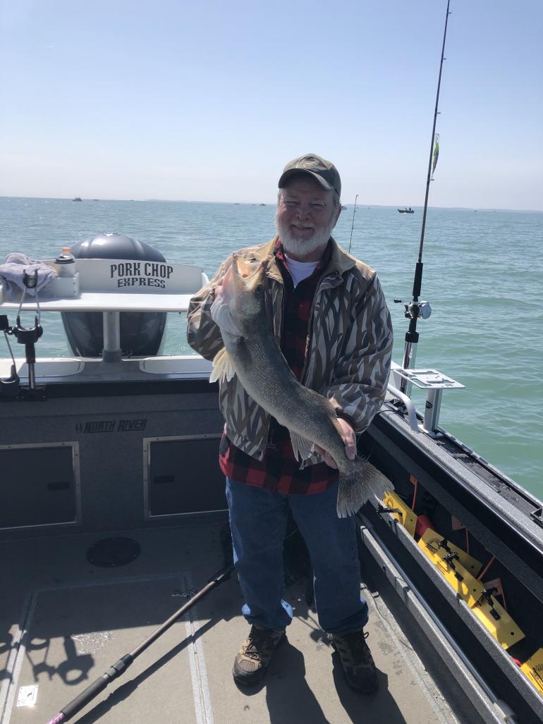 We had a fantastic trip this morning trolling the Canada line with a great couple from MI on their anniversary trip. We had a double on with the first three lines in the water and had a 3 man limit in short order. The fish where chomping today. We trolled 15 down to 25 deep 1.5 to 2 mph all gold and chrome bandits worked. I heard of some caught on spinners and bottom bouncers today and also flicker shad had a good bite today.