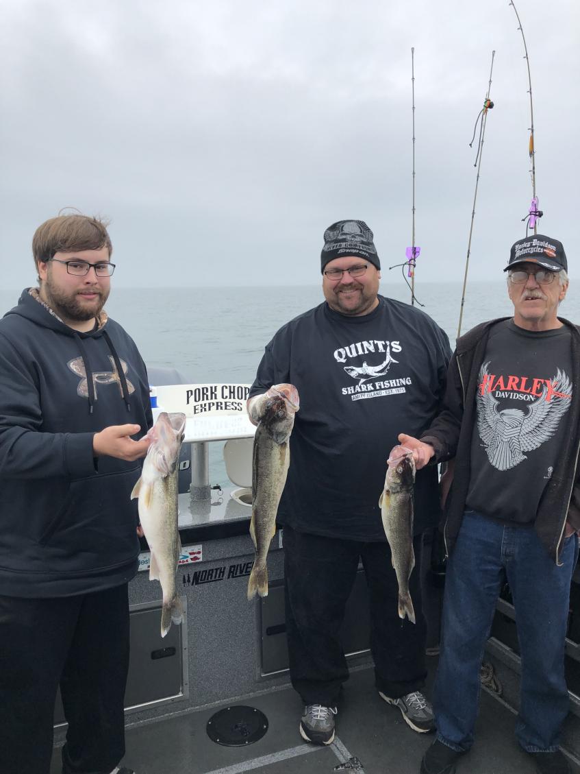 I spent the weekend squeezing in some fishing between wind and rain in Lorain. saturday afternoon a went out on a solo trip which doesn't happen very often. I was able to catch and release 30 walleye in about 2 hours with 2 rods wow is all I can. I pulled phantom dagger 7's behind jet 40's and i couldn't keep them in the water. I had a great trip this morning with a 3 generation crew and we boated a 4 man limit in 2 hours mostly on phantom daggers and jet 40's a few came on spoon harnesses. The fishing in Lorain is fantastic right now, there are fish everywhere. Happy Fathers Day to Everyone and tight lines.