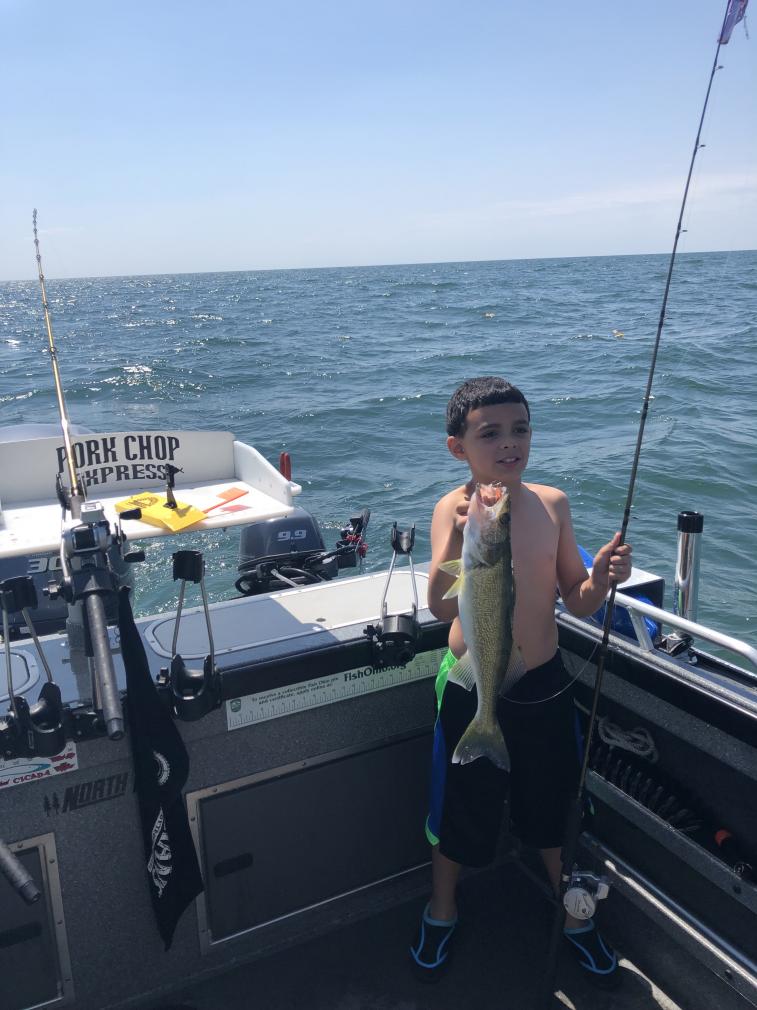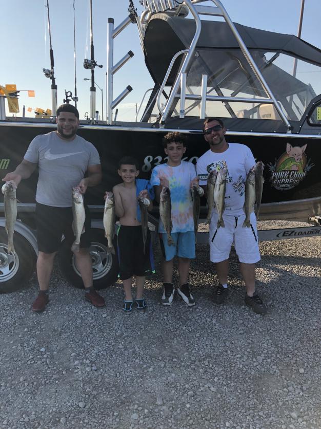 Had a really fun second trip with a couple cool cats and their boys from Cleveland Saturday afternoon. We had a blast laughing and singing fishing songs while we boated 30 walleye. We filleted them up and sent them home with their limit. We trolled the north end of the dump out of Lorain and a little east. We pulled spoons behind dipsys and jets at 2.5 and added in some bandits back 100 no weight and they did much better than this morning, i couldn't get a bite on them in the morning so switched with spoons and did much better, but tonight they like the bandits better. Nice evening to be on the lake.