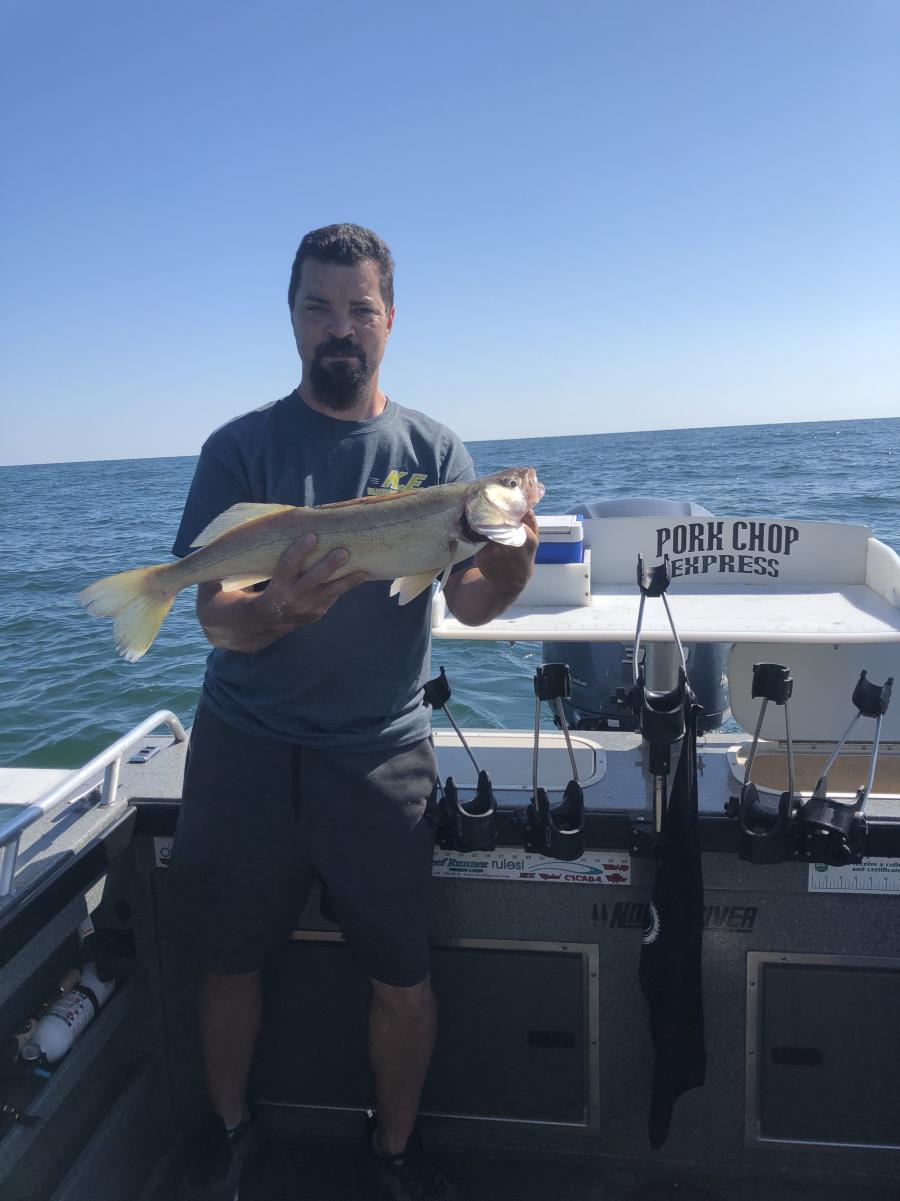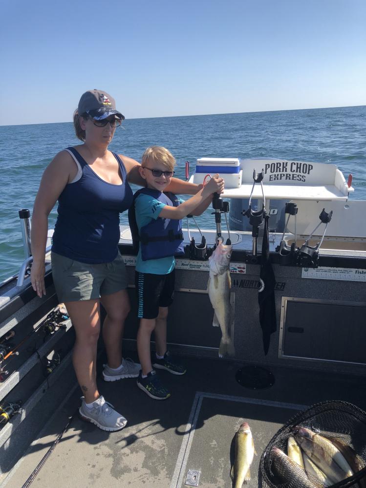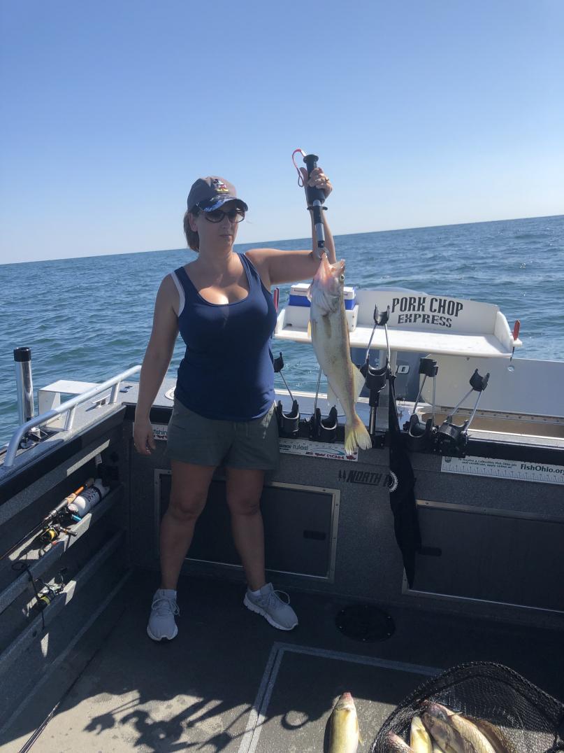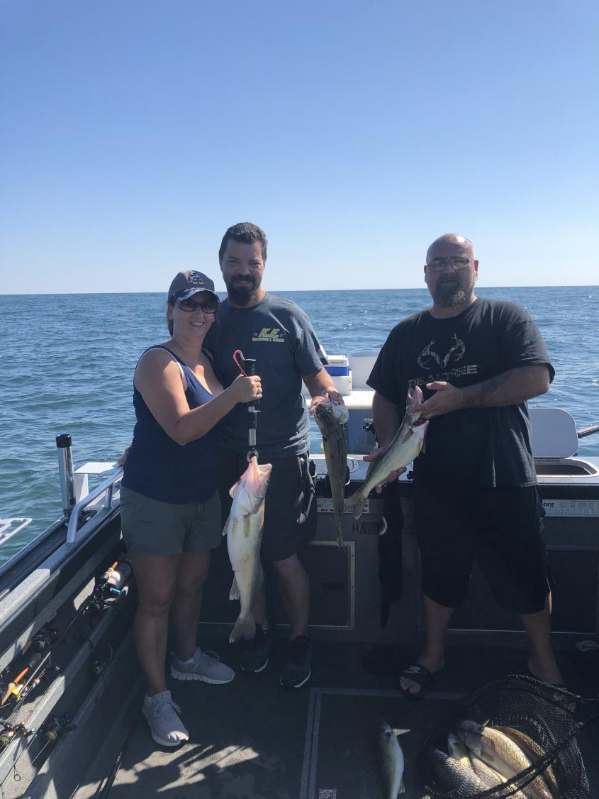 It was as fast as you could reel them in this morning out of Lorain Ohio. We fished out towards the weather buoy in 60 foot of water and found a nice grade of fish. Had a lot of fun and sent them home with their limits of walleye. Caught some dandy fish, we used bandits back 50/100 with 2oz so 150 total line out and the fish liked them today. We also used jet 40's pulling phantom dagger #7's back 85 to 90 speed was 2.5 to 2.8 the fishing was very good this morning a lot of action and good fish. Waves where around 1' to 2' and i think it helped.