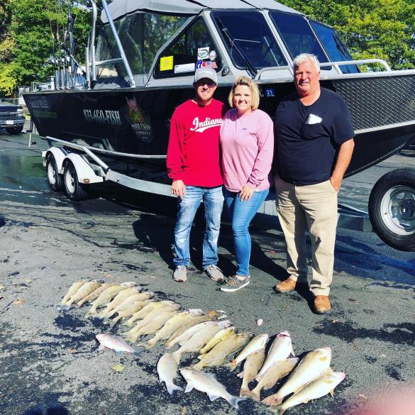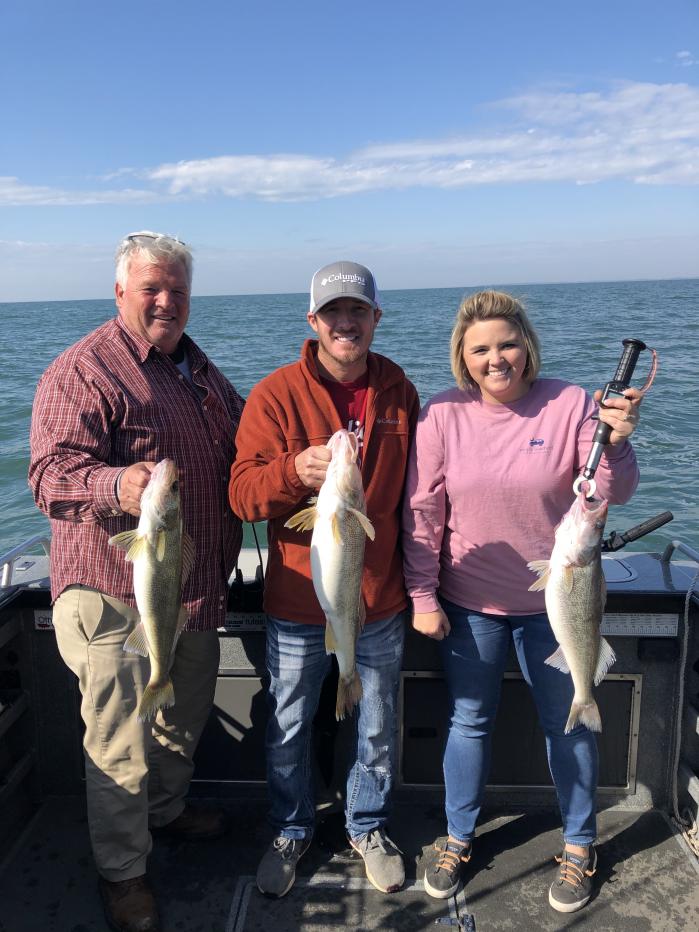 When I got back to the dock on Saturdays trip i met Vance's son and he saw all the fish we caught and was asking some questions as they came up from southern Indiana with their own boat trying to connect with same fish. They struggled to figure out mother Erie and didn't catch any fish. I talked to him for a bit and he took my number and said they may fish with me sometime. I left and headed up to Hi-way Bait and Tackle and stopped to talk to Dwight for a bit and Vance and his son pulled in and decided to book a trip with me for Sunday morning. We headed out at 7:30 Sunday morning and where on fish right away. We caught their limits of walleye and most of mine as well and 3 big white bass and a very nice channel catfish which is going into some shrimp gumbo on a cold winter weekend at my house. for the record the young lady out fished the guys. They where very happy with their cooler of fish and headed back to southern Indiana with smiles. I hope to fish with them again in the future. Still some dates for November and December open and the fishing just keeps getting better. The North River keeps you warm and dry with the covered cabin and with the heater it is 70 inside to stay warm. Give me a call to book a fall trip you wont forget 833-646-3474.