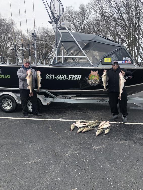 We had a good day on the big pond Wednesday with a fellow from Chicago and and another from MI. We headed out at 7:30 from Catawba towards the cans and it was flat calm. I checked a few spots out since it was so calm but ended up where we where the day prior. Had to move just a little as the water cleaned up a bit too much, but we found stained enough water and the fish where there. The bite got better as the wind picked up a little as usual. We put a three man limit in the boat plus a few for my mate with bandits 45 to 90 back at 1.3. We landed two really nice Personal Best fish for these two guys today and put a nice cooler full of fish together for each of them. we got it all done before the rain came. I will be back out this weekend to chase them some more. gonna be a bit colder but who cares!!!