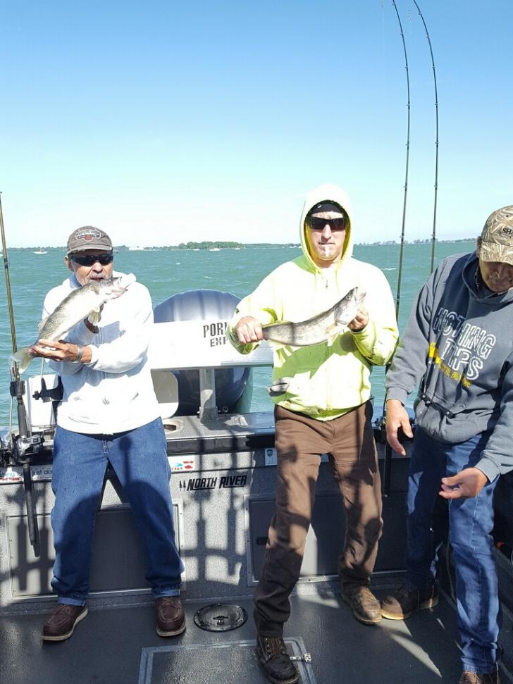 I met my crew at Mazurik at 6 am this was a makeup from the covid cancellations. IT was a bumpy day on the lake but we got this crew their 3 man limit between the monument and canada line between kellys and south bass. There must have been 500 boats out there today. We ran bandits 50 to 75 back chrome/purple and chrome green did the job at 2.0. we where wrapped up by 9 am very quick bite. This fellow in the pic just couldn't keep hold of the walleye for his picture they where struggling to get those sea legs working :)