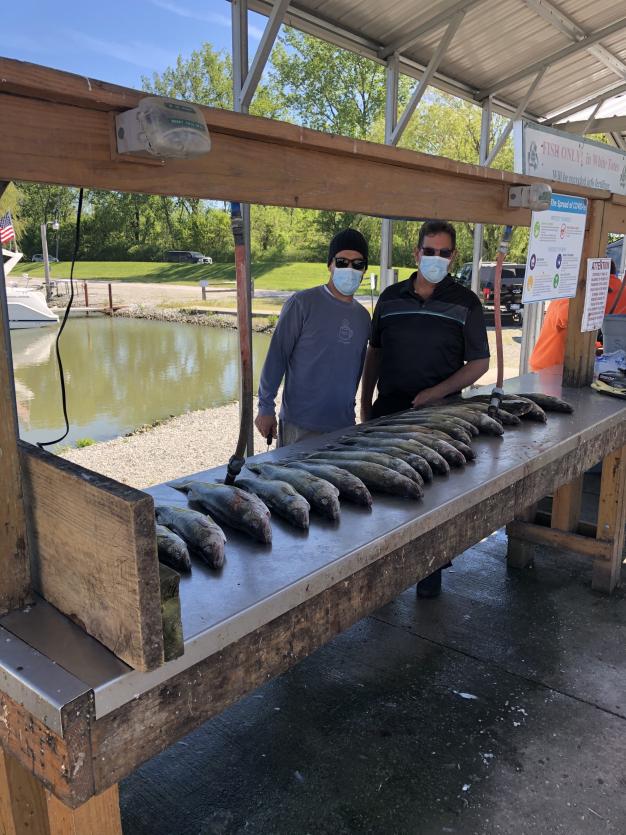 We had a quick charter this morning, my crew of two arrived a little late at 6:30 and we launched and headed north. We set up on a northeast troll with the wind changing to from the southwest starting at the monument. We set up all bandits chrome with green seems to be working so we favored that color and threw on a taco salad that pulled several fish. 55, 65 no weight and 50/60, 50/70, 50/80, 50/85 with 2 oz all caught fish between 1.5 and 1.8 a little slower this morning. We boated 24 walleye 12 for my crew and 12 for me and the mate and headed in at 8:30. The fishing doesn't get much better than we are having right now on this great lake we have. Attachment 6227