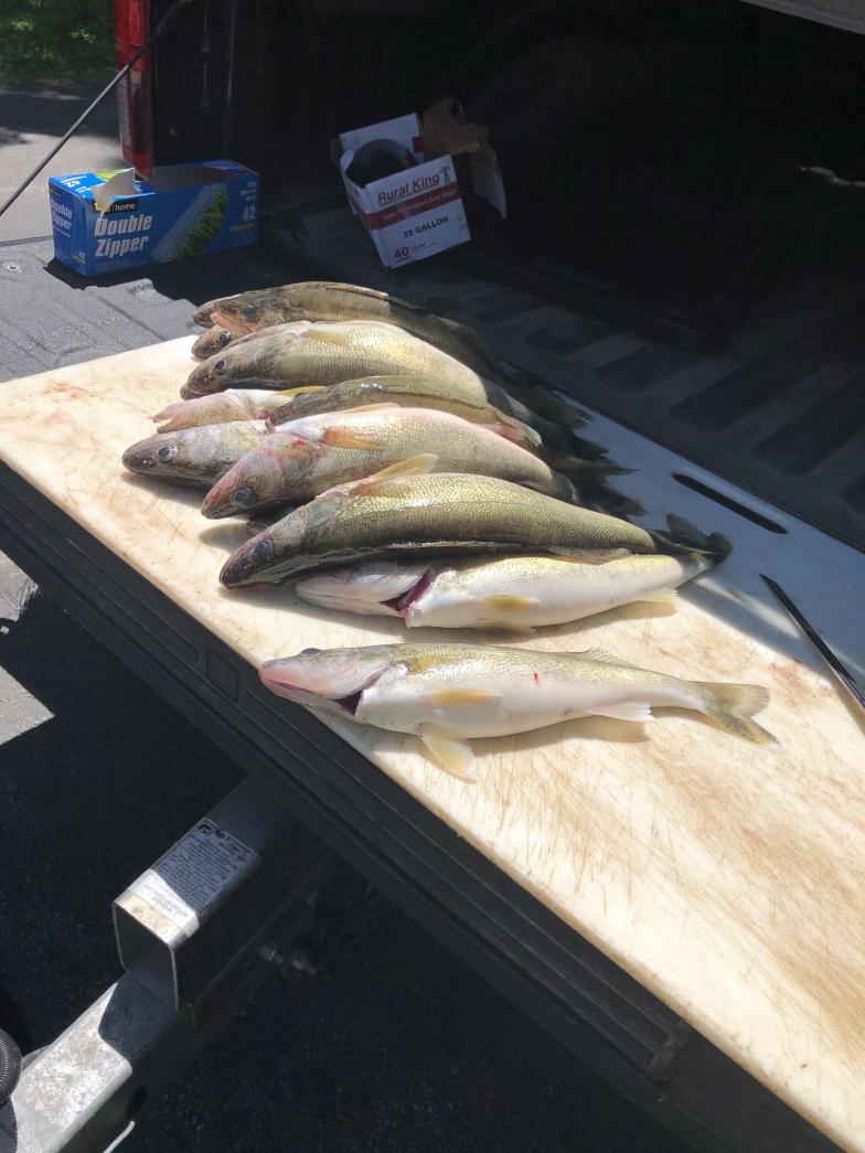 We launched from mazurik at 11:30 and only went north to about the middle of the south passage. We set lines and started trolling east between kelley's and marblehead. I marked a lot of fish there on the way in from last trip so thought we'd give that a try. We ran 3 bandits on each side at 55, 65 and 75 back and we ran two double willow harnesses with 2 oz off shore snap weights 4' in front of harness back 50 and 55 and our two 4 oz bouncers on the corners. We started out with several big sheep head but filtered thru those as we went east and started picking up walleye steady. We boated their limits by 1:30 pm with a few reeled in by my mate too. The lake was in perfect condition today nice walleye chop and light breeze just perfect for a fishing trip. We filleted these fish up and they will get some nice meals out of these great eater sized walleye from our great lake. The fishing today was definitely slower than yesterday but how can anyone complain about catching two limits of walleye in 1 1/2 hours. The fishing is so good right now, bandits, spoons, harnesses, mag 44's, flickers it just doesn't seem to matter what you throw at them they will eat it. I will be back out starting this friday and will try to post each day i fish. tight lines to all. Attachment 6257
