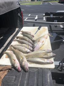 We launched at Mazurik at 6:30 am and headed north of Kelley’s and tried some casting and drifting. With the lack of wind we switched to trolling and caught one limit in that area and it was slow so we moved south to just out from the monument and trolled south towards Mazurik we ran bandits 45 to 65 back and bottom bouncers off the corners. We