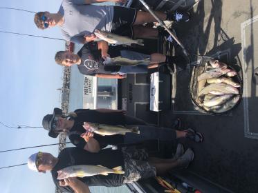 We had a nice trip Saturday afternoon with this crew from KY. We launched at 1:30 and headed north again to same area we have been fishing and set bandits a little deeper this time as fish dropped with high sun. We ran 65 to 95 back this trip 2.3 to 2.5 was the speed. We boated a nice 4 person limit and caught these young men their first walleye. Nice afternoon on the lake.