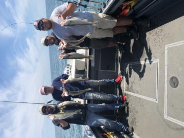 We launched at 6 am and took a very short boat ride east and We set bandits from 85 back to 65 back and dipsys on 1 at 40 back and 3 at 75 back with spoons and panther daggers. Colors are pink and white spoons and purple and blue chrome bandits. We started out at 2.0 but had to increase to 2.5 to 3.0 to get the bite going. Once we found the school of fish we had 24 in short order. The fish seemed to be Little more concentrated today had to keep going over same area. It was a little tougher with the wind and waves first thing but got better as morning went on. Biggest fish today was 27” and several 24” to 25”. They are eating mayflies and it is slowing the bite some but not a lot. Marked the fish down at 30’ but kept the baits higher as they will come up and get them in this clear water. My afternoon trip cancelled they had some family emergency so back out tomorrow with day 1 of a bachelor party trip with a crew from Kentucky.