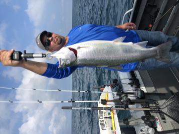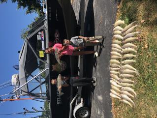 We launched at Mazurik at 6 am and headed north east past the commercial nets and turned north to the Canada line and started trolling East towards the buoy. We ran blue chrome and purple chrome bandits all on 50’ leads from 150 to 125 back total line out. We did not need any dipsy’s this morning the bandits did all the work at 2.5 mph and we put a 6 man limit in the boat in about 4 hours. We also caught two steelhead one of which was a very nice fish. The little 5 year old boy on this trip made my day. He (with his dads help) reeled in a nice walleye right off the bat and the whole rest of the trip if someone caught one bigger he told them they had to throw it back because it couldn’t be bigger than his. Made my day listening to him. Very nice morning on the lake.