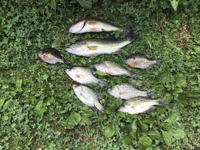 Dad and I went out again yesterday, and really had a fantastic time -- we arrived at the Dock about 0930, and except for 1 or 2 other boats we had the lake to ourselves. So we went down to the north end and started casting. IT was really was a great day -- by the end of the day, we had 9 fish, including 2 big bass -- dad got them both -- 1 14 inches, and 1 16 inches. the crappie were nice and fat - - the smallest crappie we have caught at Chippewa lake is bigger than the biggest we have caught at Spencer Lake.
