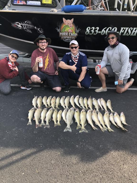 Friday morning we had a crew from nevada and missouri we fished the area from the weather buoy to 4 miles south and had their limits plus two reeling in lines by 11 am it was a slow start this morning but picked up nice for us.