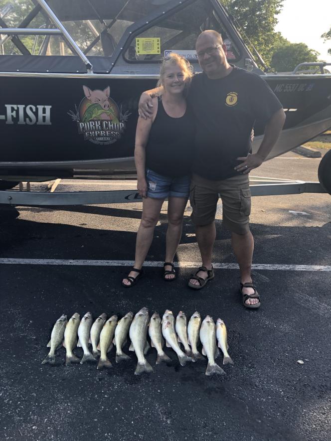 Sunday morning we launched at 5:30 with an anniversary trip trying to beat the wind that was coming today. We headed to the buoy and had 13 fish in 45 minutes. They chose to head back in as the waves where building and starting to feel it. Very good bite this morning.