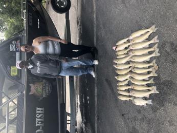 I was able to get two trips in Monday. We started at 6 am at mazurik and headed to the weather buoy and boated 23 in about an hour. 2nd trip we launched at 1:30 and back to the buoy for 31 walleye. all bandits 50’ lead back 160 to 130 total line out all blue or purple chrome. Speed 2.5 to 3 mph. Great day fishing.