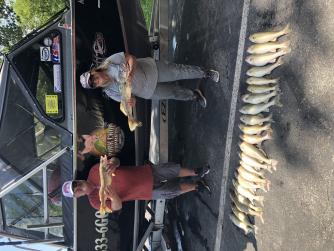We launched at 6 and headed to the buoy and found no fish within 5 miles any direction so I headed back west in shallower water as the water temp dropped almost 10 degrees from the north wind. We found some good marks around Kelly’s shoal and set up on them with bandits 50’ lead back 145 to 125 total line out and boated 23 walleye most where very nice sized fish. Blue and purple chrome speed was 2.2 to 2.5. Good morning once we found fish.