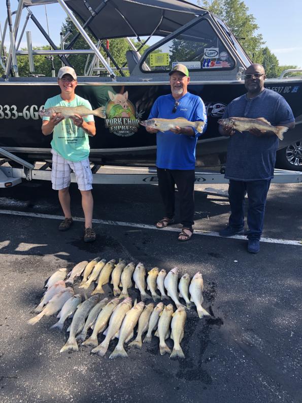 we launched at 6 am and headed back to where we left them last night and they where still there and feeding very well. we boated them a limit i boated a limit and my mate boated 5 and we where done and back at the dock at 10 am. This was a catching trip for sure. same exact baits and program as last night and the same line we ran last night. Absolute great fishing and not that far from the dock. just doesn't get much better.