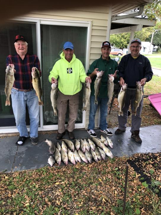 We launched from Mazurik around 7:15 and headed back north of Kelleys and the fish where still there. We had a good day on the lake today boating 30 walleye all on bandits. The fish where from 20 to 40 feet deep so we ran 12 bandits from 70 back to 160 back all with 2oz and 50' leads. speed was 2 to 2.8 with the waves surging the boat. color didn't seem to matter we caught on gold, taco salad and white bodies. We ran spoons for a little while on dipsys but i think we only caught 1 fish on those so we pulled them since the bandits where working so good. A good couple days with this crew of great guys. The winds will keep us off the lake until the weekend. We will be back out saturday and sunday. Tight lines see you all on the lake.