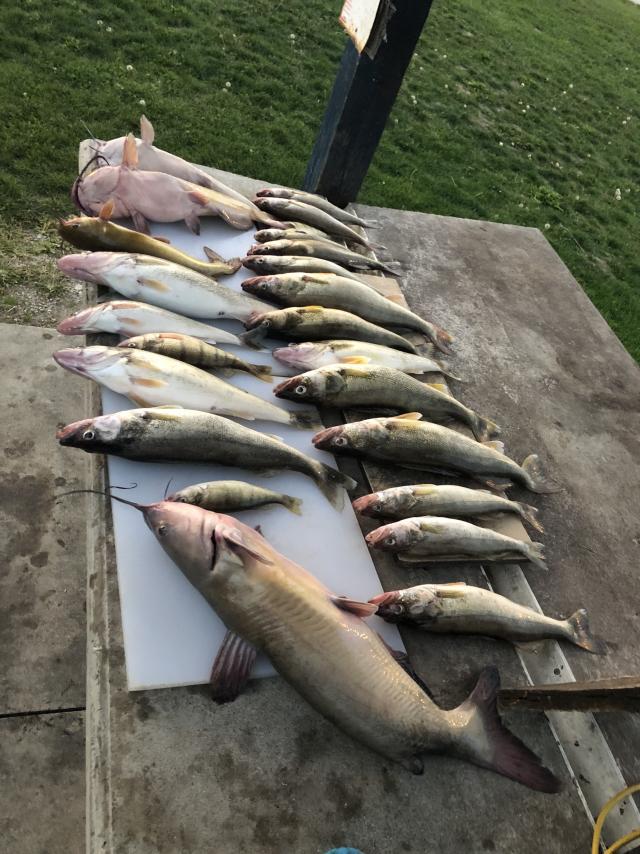 Friday 10/9 we worked an area north of Kelleys island with some structure and we caught 17 walleye 4 catfish and 3 perch on a combination of bandits, husky jerks and bottom bouncers with worms 1.5 to 2 mph. it was a slow bite but a very nice day to fish.