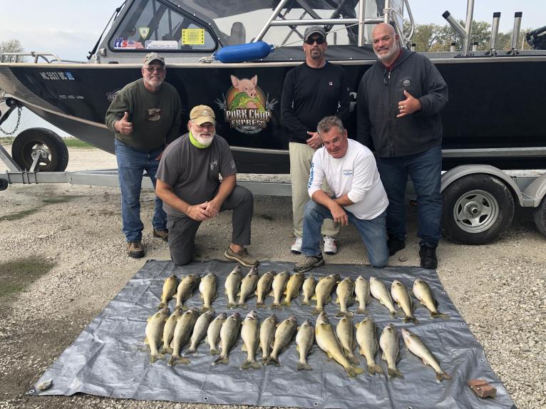 Saturday 10/10 We fished straight out of huron in 40' of water and had to troll north with the waves. The bite was very good we ran bandits 60 to 100 back no weight at 2.0 mph and boated 30 nice walleye. The waves off shore where 4 to 5' and running back in was a battle but all in all it was a great day of walleye fishing. The fish are getting closer to shore and starting to settle into the fall pattern the fishing should start to get very good and more consistent I hope. The wind will be our challenge the way it is looking.