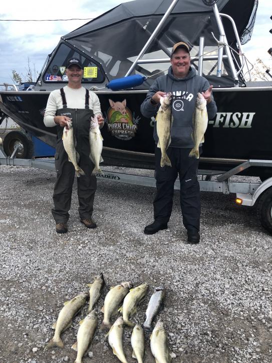 We get them their 12 nice walleye by about 1 pm and then headed for Lorain. It was pretty muddy there from the rain so we only had one area we could work and some storms where working their way thru and the wind got fairly gusty a few times making it difficult but we managed to hook up one steel head for Todd whom has never caught a steel head before, so it was worth the trip. We had a fun day on the lake.Attachment 6603