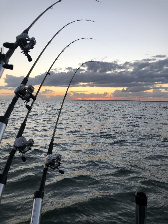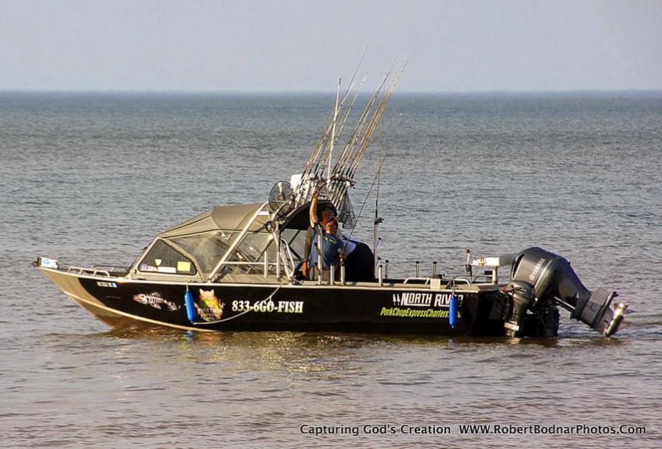 We launched at about 7:15 today in Huron and headed north. It was a beautiful morning on the lake with a fantastic sunrise. Our plan was to get them their limits of walleye and then load the boat and head over to Lorain and try to hook up some steel head along the break walls.
