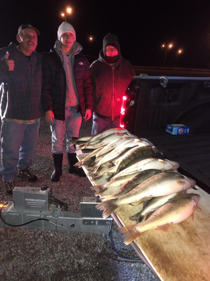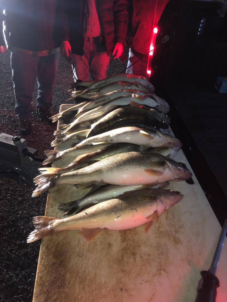 We launched out of Lorain at around 5 pm and got all set up to troll the rocks around the outside of the Harbor. The water was a little stained but with the moon going to be so bright tonight i figured we would do ok as it would light up the baits good and make a nice shadow for the fish to see. We ran perfect 10's all Dark colored 30 back to 12 back at 1.5 mph. We boated 23 walleye the biggest being 8 lbs. Still haven't found a fish big enough to weigh for the brawl, but we are getting closer. I still have some dates open for November, morning trips and night trips if anyone wants a trip give me a call. Going to be blowing good for the next couple days but then looking good after that. Stay safe and tight lines to everyone.