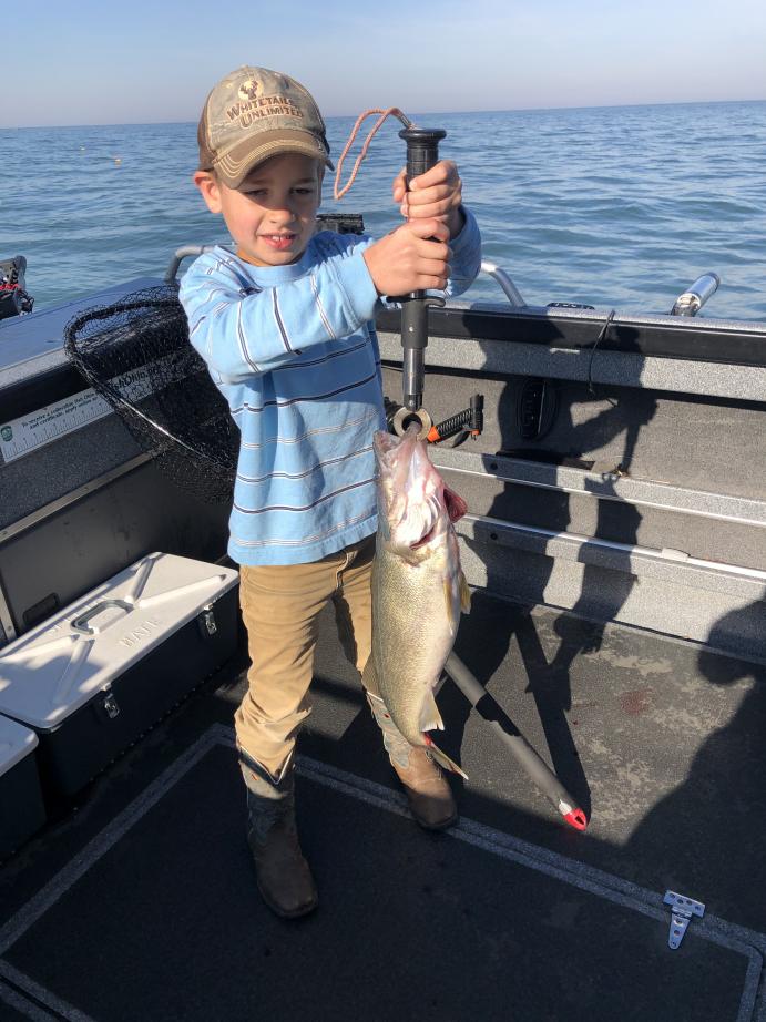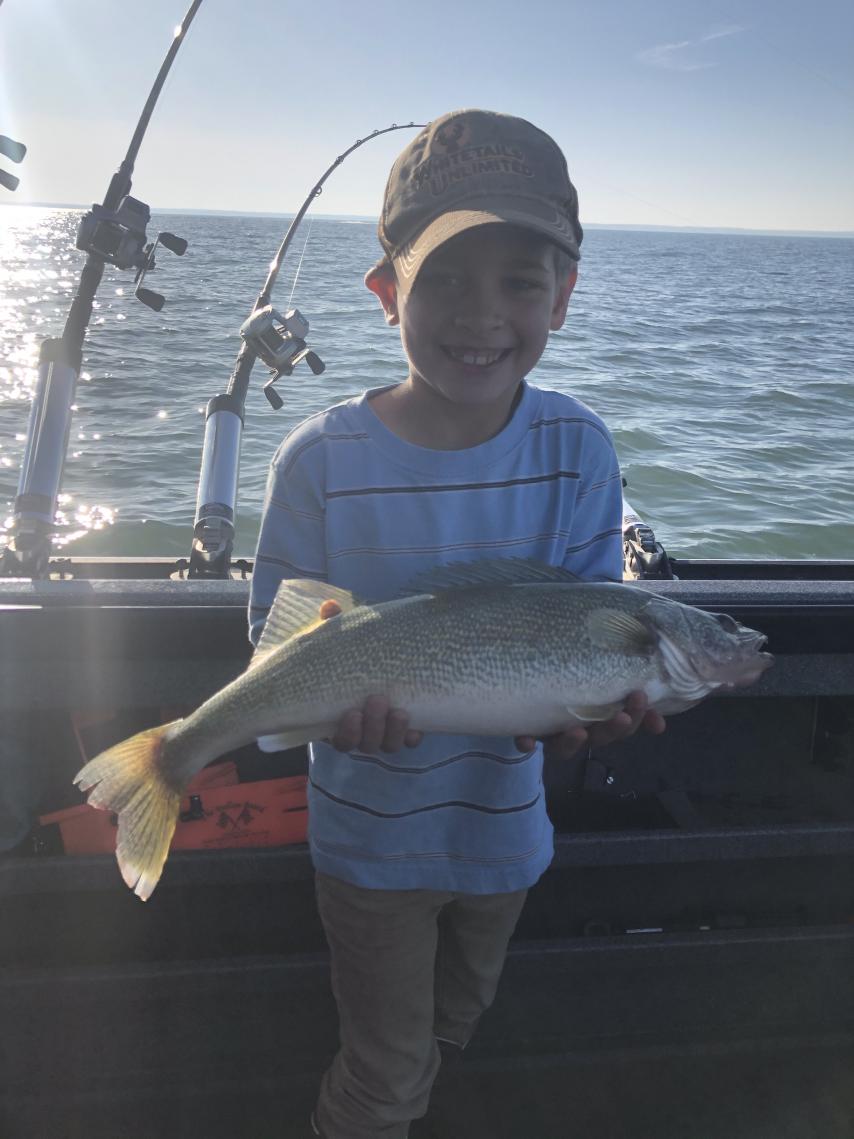 We launched out of Huron at 6:45 today and headed east towards Vermilion to that big school of fish I located yesterday. We set all bandits out with a mix of chromes and white body baits all with 50' leads 2 oz weight and 120 total was deepest and 60' total was shallowest and they all caught fish but 120 back was the best today. The fish where really feeding well today we had 6 on at one time today and at one point we only had two rods in the water out of twelve we caught so many fish so fast. The fishing right now is off the hook good, we put a 6 man limit of nice walleye in the boat today. None of my trips this week where Brawl trips so we where focusing on filling limits for the freezer and the grade of fish has been really good. We had a young fellow on board with us today that really loves to fish and he hung in there really well with us today. He watched me fillet all of the fish very attentively. I think he is hooked for life!! Great day to be on the water, great sunshine, calm lake and warm air and best of all HUNGRY fish.