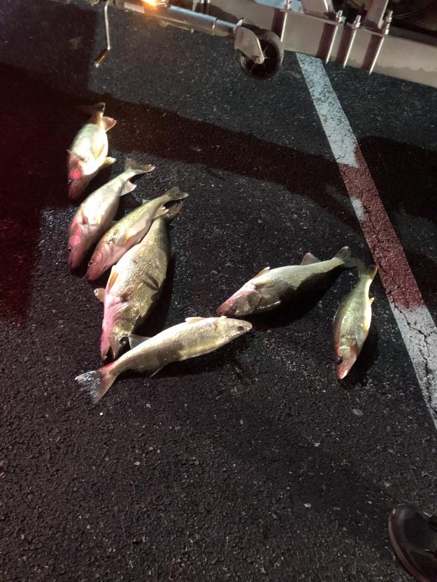 my night trip went really good up until dark then the fish just shut off. the sky was overcast and blocked the moonlight is probably why. We did catch some nice fish just before dark. same program as the morning.