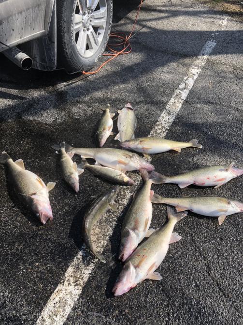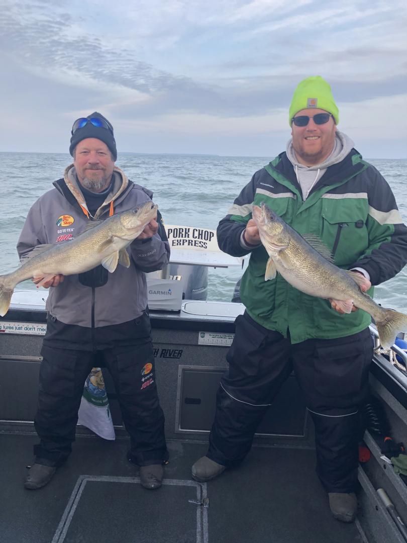 We had to search a bit to find some fish on Tuesday after the blow on Monday and we found some nice fish for the crew put a nice 9lb fish in the boat. Wednesday was a slow start but we ended up with some nice fish for both trips the fishing wasn't as good as over the weekend but they would eat if you could find the right water. My Minnesota crew caught 2 personal best fish one 30" and a 28" the wind really picked up last night at the end of the trip. We pulled bandits on all the trips 1.2 to 1.5 mph All white based in color 60 to 120 back all caught fish but most came 80 to 120 back. Big blow today and tomorrow then search and find the proper water after. Back at it saturday if the wind lays down enough.