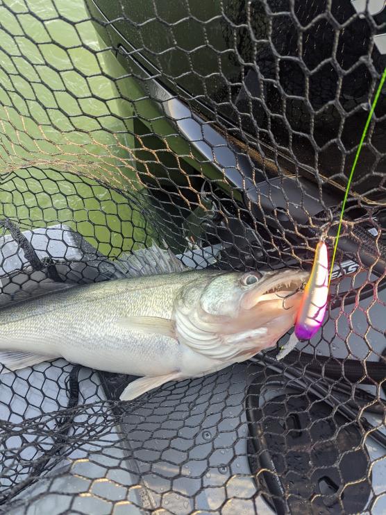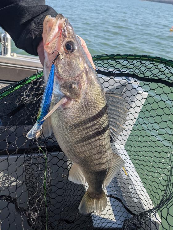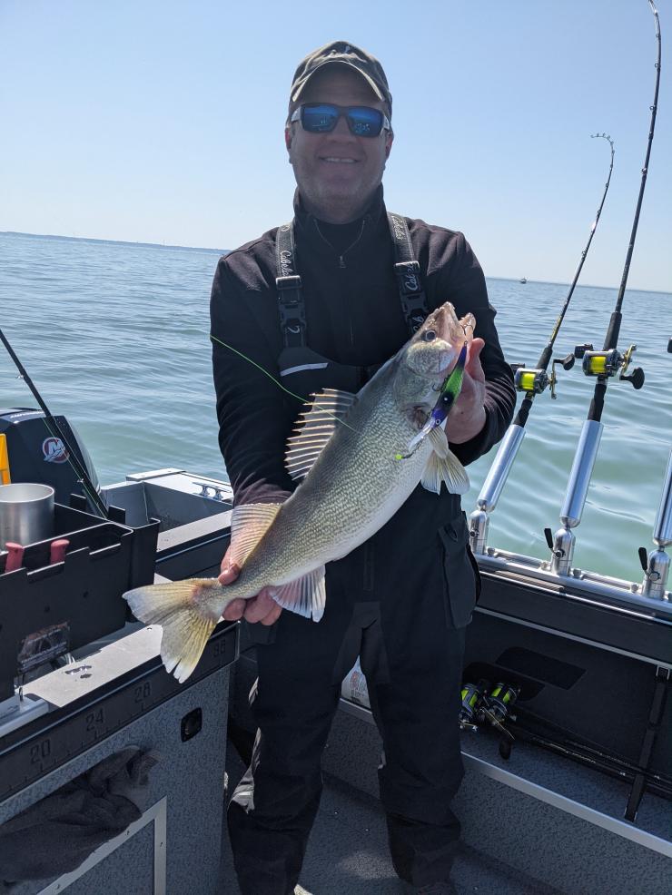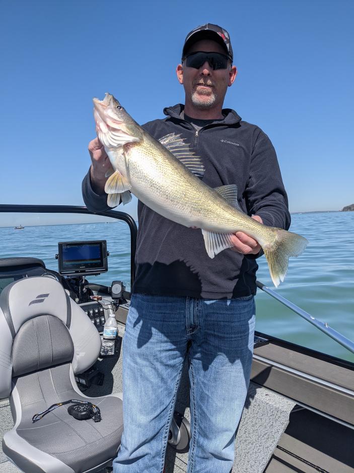 First trip for our new Starcraft was very successful and I am very pleased with the boat. It was a very tough bite for most but we managed to catch 11 of our 12 fish with a couple pigs! Fished just west of South Bass with Bandits 60',80',100' back at 1.3.