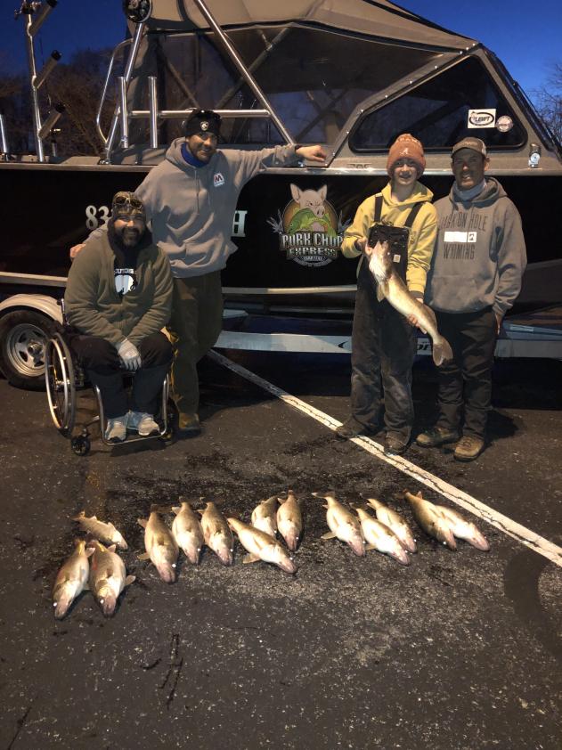 We had a nice trip on Friday afternoon with Jim and crew. This is the second trip i have had a wheelchair user and the north river performs well in this category. there is a lot of room in the back of this boat and rolling around is easy for the wheelchair. It fits inside the cabin between the seats as well so He was able to stay dry and out of the wind. We had a fairly slow bite and had at least 20 fish come unbuttoned but we managed 15 nice fish for them to take home. We had a very difficult time getting the fish to hook up this afternoon. They where all happy and booked another trip in April. It was bandits at 1.2 to 1.5 this afternoon all on pink and chrome. 45 to 80 back.