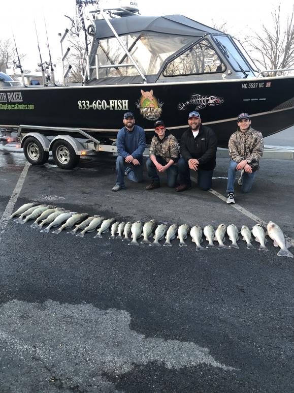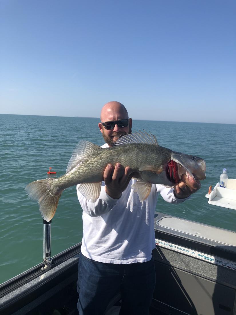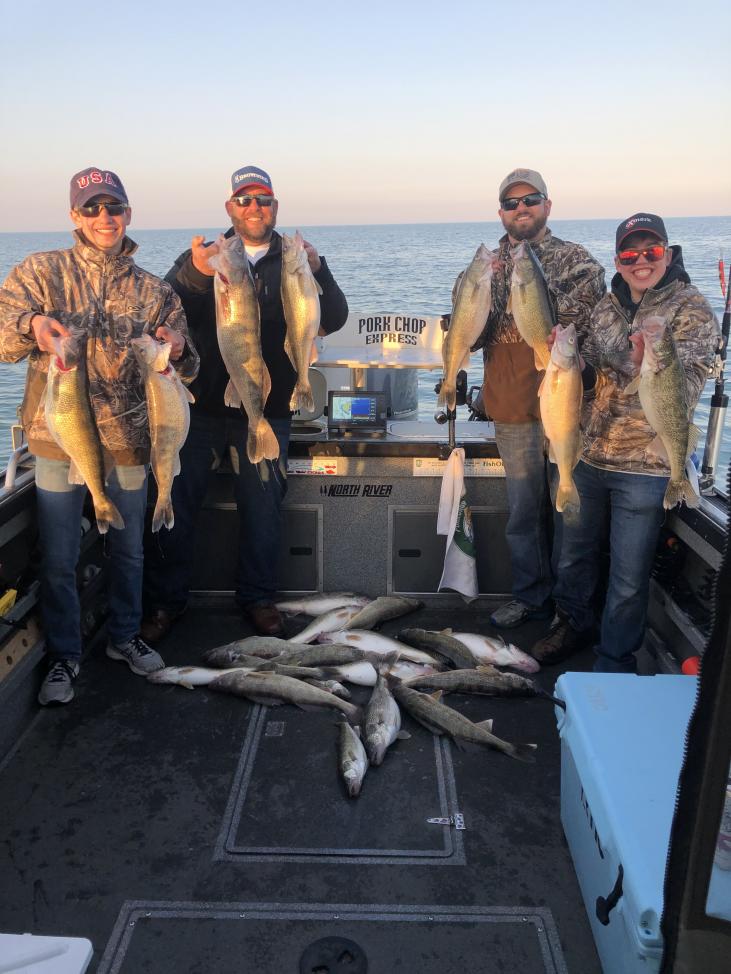 We launched at mazurik at 1:30 or so and headed to the east side of Kelleys and set up with bandits 35 to 80 back running 1.5 mph pink orange and chrome did the damage. We smoked the fish for this crew today and put their limits in the boat in about 4 hours or so. The fish really turned on today for this trip as the boat traffic disappeared the bite got better. We put 5 fish ohio's in the boat and a 30" 10.5 lber. Great afternoon fishing trip as the lake was calm and the sun was shining.