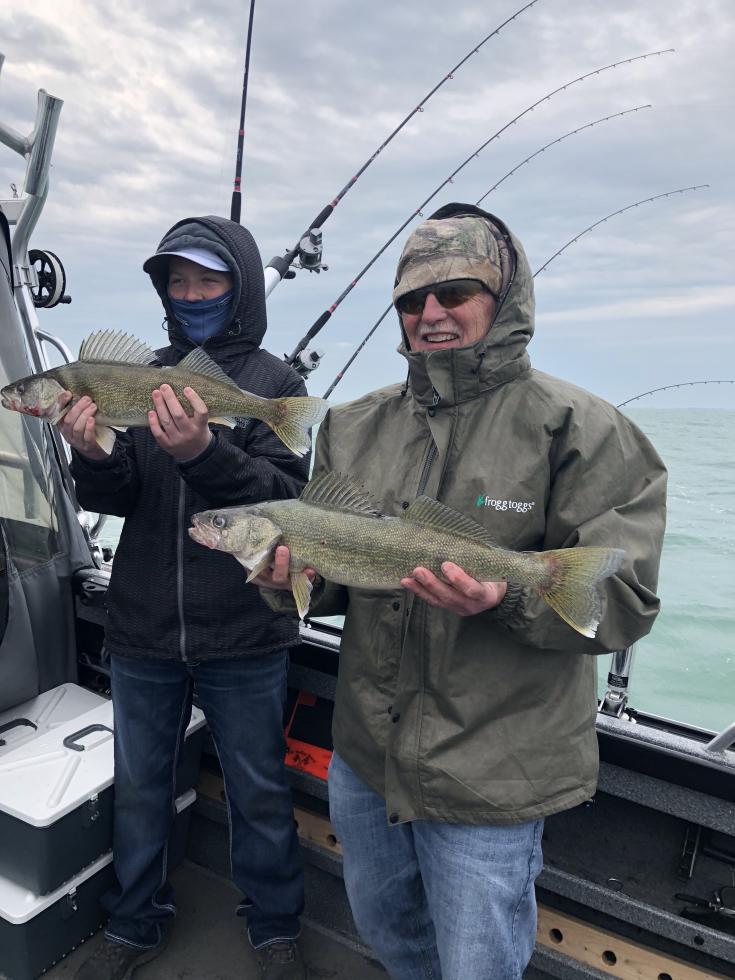 We had some big wind coming in from the NE and the waves where building but they wanted to give it a shot. It got cold and the waves where building to 4' but we set up trolling with them and made one pass north of kelleys and pulled 4 fish and then moved to the south passage and made one pass and pulled 7 more. All on bandits who knows the speed 1 to 2 mph in those waves with both drift socks out. The kids had a ball and grandpa did too watching them reel in fish. We ended the trip way short due to the strong wind and waves but they had a blast challenging mother nature.Attachment 6863Attachment 6864Attachment 6865Attachment 6866