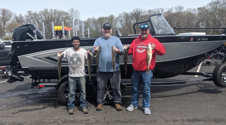 Great morning for the first charter of the year and for the first charter on the new Starcraft. Launched out of Catawba Island and fish a small pod of fish just east of "F" can. Bandits in Bagger 3.0, Parrot, Parrot 3.0, Swim Shady Eriegardless Custom Lures all caught. Best leads were 50' and 60' back. Caught their limit plus the captains that went 84#'s at the cleaners for 24 fish. Fun fished another 1.5 hours to finish out the day.