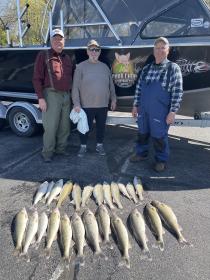 We had a great trip this morning running bandits Andy DHJ 12’s at 1.7 to 2.0 mph and we boated 24 nice walleye for them and me. 45 to 65 back did the work. Great trip and looking forward to more with them. Off this afternoon to get the boat serviced not looking good for tomorrow or Friday and tournament #2 on saturday. Out of Port Clinton.