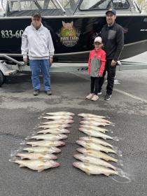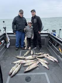 Trip number two was a catching trip today with a princess on board that reeled in her first limit of walleye. We had a blast on this trip and the walleye where hammering the baits. We reeled in this crews 3 person limit and some of mine too. Done just before the rain started. We moved to a different location from this morning and it was game on bandits back 50-85 at1.9-2 mph. All the fun you can have with your pants on.