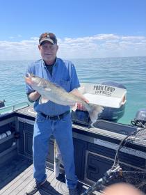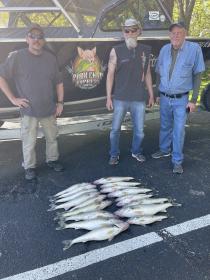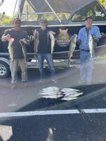 Second trip was a very good bite similar to this morning. We ran bandits up high in the water and boated this crew from Illinois their limits of nice walleye anchored by a nice 27.5” fish. Great day on the lake fishing west of green island. We ran bandits orange and green back 50-75 at 1.5 had to slow down. Off tomorrow to fish the third LEWT tournament out of Huron.
