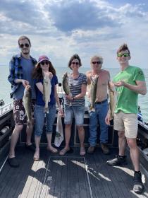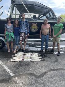 Had a fantastic afternoon trip today with the Nyce family from Indiana. The sun was out and the wind picked up just a little for a perfect walleye chop. We boated them their 30 walleye filling all their limits. It’s back to the campground for a fish fry for them. The fish where on fire today we had on 5 at once today it was amazing fishing. They never used off shore planer board before but you wouldn’t have known they picked up fast. They all did a great job getting the fish in. All chrome blue and taco salad bandits at 2.0 mph did the work.