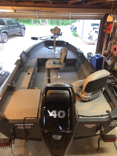 Covid restricted use, only in the water 1 time last year...Barley broke in. 40 horse 4 stoke Mercury. Custom snap on cover. Minkota 50 Powerdrive trolling motor. Lowrance Hook 12-TS fish locater / GPS. Versa Track system.